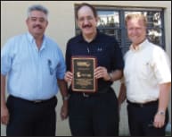 Coburn's Pedro Parra (l), senior sales rep for Latin America, and president Alex Incera (r) presented a plaque to Teodoro Tarud (c), owner of Labocosta