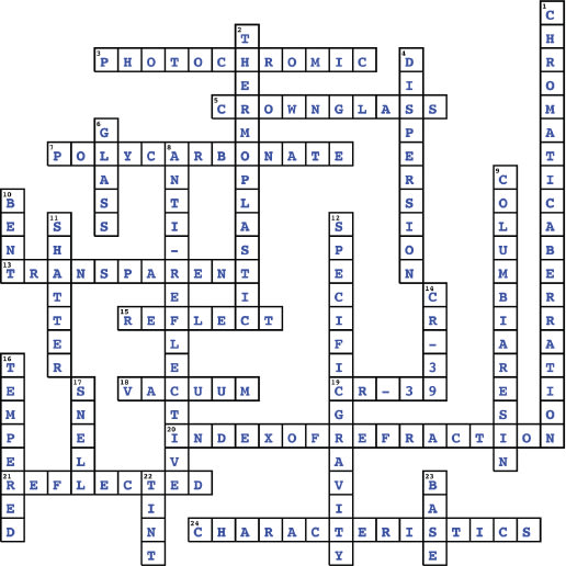 The feature from EB's August issue, “A Look at Lens Materials,” by Jenean Carlton, ABOC, NCLC, included the accompanying crossword puzzle, “In the Know About Lens Materials.”