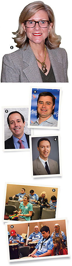 1. Jean Sabre, Optical Women’s Association; 2. Jay Black, Maui Jim 3. Drew Oppermann, Adlens 4. Gilan Cockrell, O.D., FAAO, Williams Group 5. & 6. Envision hosts a free music workshop at its headquarters in Wichita, KS, for local blind or low vision residents