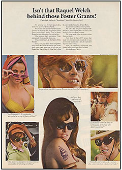 In the 1960s, Foster Grant catapulted to fame with an advertising campaign, “Who’s That Behind Those Foster Grants?” featuring iconic Hollywood celebrities such as Raquel Welch, Anthony Quinn, and Mia Farrow. Advertising Age named it one of the Top 100 Ad Campaigns of all time. Pop and film stars quickly adopted the habit of wearing sunglasses as part of their image—and the masses immediately followed. Thus began the correlation between wearing sunglasses and “being cool.” Sunglasses became a popular culture fashion icon and are now synonymous with being stylish and chic.