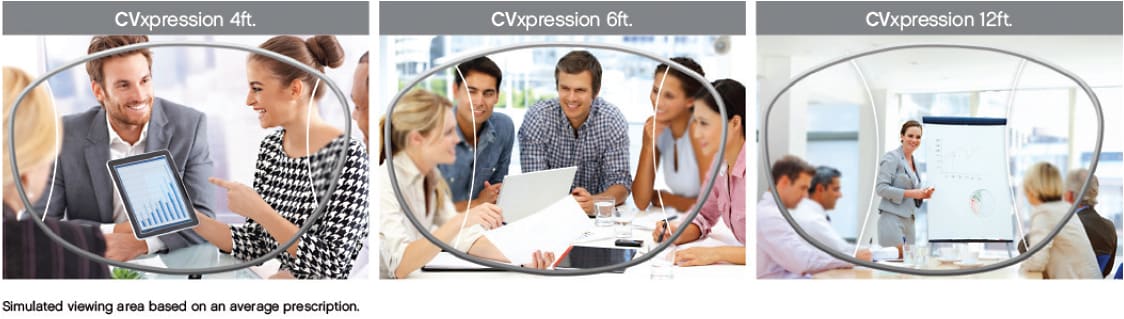 The 4-foot distance lens is optimized for reading and intermediate areas; the 6-foot lens is optimized for intermediate vision beyond 4 feet; and the 12-foot design is optimized for vision beyond 6 feet.
