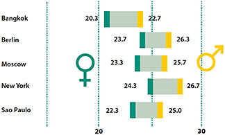 WHO TAKES SELFIES? MEDIAN AGES PER CITY AND GENDER