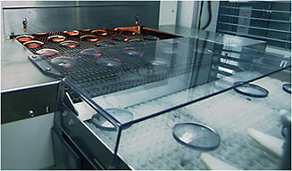 The imbibition process involves applying photochromic dye to the front surface of the lens and then processing it (usually by heat) so that it penetrates the surface of the lens material. Image courtesy of Transitions Optical, Inc.