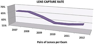 Over the past several years, lens capture rates have dropped from approximately 65 percent to 59 percent, but, as reported by members of Cleinman Performance Network, have trended slightly upward in recent past.