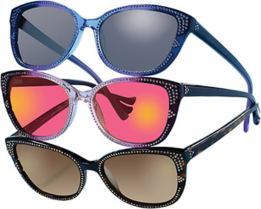 This dynamic collection features rich enamels, Swarovski crystals, gold and silver leaf inlay, and fabulous jewelry-inspired temples that are created using only hand-set applications. All styles are made in Europe or Japan, and feature high-quality materials and trendsetting shapes and designs.