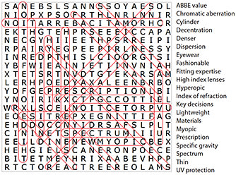 Emerging presbyopes are patients experiencing the early signs of presbyopia which begins around the age of 40. This puzzle focuses on the symptoms experienced by early presbyopes and lens options available to correct this focusing challenge. To learn how you can reach this market, see page 48.