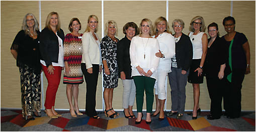 The 2016 OWA board, from left: Christie Walker (Jobson), Jennifer Jackson (Marcolin), Maureen Cavanagh (Vision Impact Institute), Tammy Reaves (Target Optical), Lorie Lippiatt, O.D. (The Salem Eyecare Center, Inc.), Debbie Myers (Pacific Northern, Inc.), Heather Smith (VisionWeb), Tiara Claxton (Safilo USA), Janet L. Jackson (Ocuco, Inc.), Jean Sabre (Uptown Vision), Katherine Allen (Luneau Technology), Valerie Manso (BluTech Lenses). Not pictured: Kate Renwick-Espinosa (VSP Vision Care)