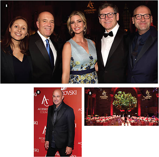 1. Left to right: CEO of Lacoste North America Joelle Grunberg, VSP board member Rob Lynch, real estate developer and entrepreneur Ivanka Trump, president and CEO of Marchon Eyewear Claudio Gottardi, and creative director for Calvin Klein Ulrich Grimm; 2. Designer John Varvatos (who has an eyewear line with REM Eyewear) received the Designer of the Year award; 3. The sophisticated setting at the ACE Awards