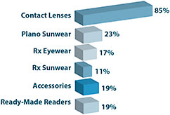 Of those independents that do sell online, a whopping 85% say they sell contact lenses. A far distant second sales category for ECPs selling online is plano sunwear (23%).