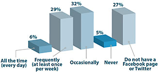 But only about 30% of ECPs say they post frequently (at least once per week) to their Facebook page or Twitter account—and only 6% say they post every day to their social media channels. Just over 30% say they post occasionally.
