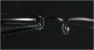 This bend also depends upon the need for more or less vertex distance. If more distance from the eyes is required, you should grasp the top loop of the “horseshoe” pad arm and pull it away from the frame, stretching it toward the face.