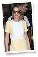 While she may be in the middle of “Bad Blood” with singer Katy Perry, singer and actress Taylor Swift, wearing Swarovski sunglasses (SK0061 style) in New York, is looking pretty cool about the whole thing with short shorts and sparkling sunnies.