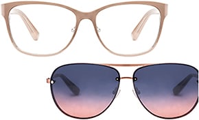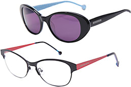 Select eyewear styles also feature a luxurious end-piece crafted from campaign hardware used on Jonathan Adler furniture.