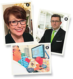 1. Pat Gantt, Kenmark; 2. Dr. Francesco Ferro, West-Groupe; 3. Todd Banks of Robertson Optical blocks lenses ready to be surfaced in the company’s newest free-form digital lab