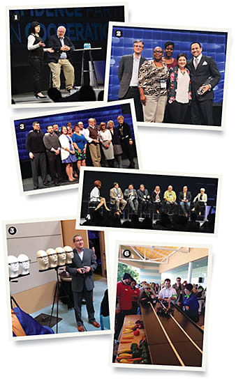 1. Bertrand Roy and Catherine Rauscher kick off Academy; 2. Southern Eye Specialists is named Eyecare Practice of the Year; 3. Walman Optical is named Optical Lab of the Years; 4. Award finalists participate in panel discussions; 5. Manuel Solis leads a hands-on product demonstration; 6. Competition is fierce as attendees enjoy a teambuilding exercise