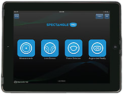 Many iPad-based apps take measurements as well as handle lens demonstrations. Shown here: HOYA Vision Care’s Spectangle Pro