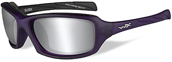 WX Sleek is offered in two frame/lens combinations: Model CCSLE01, pictured here, is a Matte Violet frame with Silver Flash lenses, and model CCSLE02 features a Matte Black frame and Smoke Gray lenses.