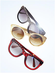 The latest sun styles also blend a splash of elegance with technical edge as frames utilize details like studs, faceted insets, and special metalwork that elevate eyewear to works of art.