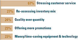 Beyond providing great customer service, ECPs also report several other successful strategies for growing business in the face of increased competition, price sensitivity, and decreased profit margins resulting from healthcare reform. These include reassessing inventory mix (27%), providing lower-cost options (46%), and discounting (29%).