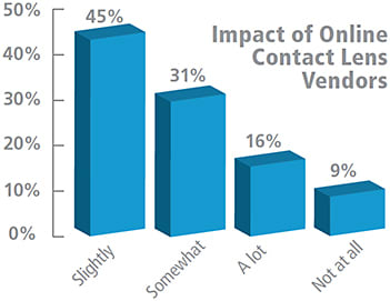 Is the online discounting of contacts an issue among ECPs? The numbers say yes. 91% of responding ECPs say they’ve been affected at some level by the online sale of contacts.