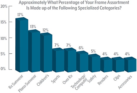 The numbers paint the picture. More than half of ECPs’ assortments are focused on midrange product (51%), yet a full 30% of their mix includes high-end product. At the same time, most ECPs (31%) say they display between 751 and 1,000 frames at the same time—this number increased by a respectable 5 percentage points from 2015.
