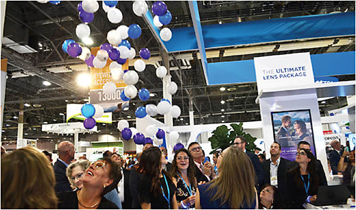 The launch of the Ultimate Lens Package is celebrated at the Essilor booth