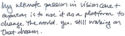 I'm most proud to have had the opportunity to design eyewear for my diverse patient base who were underserved.