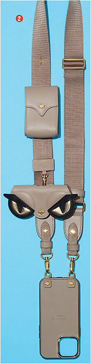 The Any Di PhoneStrap modular collection keeps eyewear, credit cards, keys, and your phone within reach. The SunCovers are genuine leather stylized to reflect your individual personality—a sophisticated suede chevron pattern or a cheeky kissy face, each keeping glasses snapped securely in place with 24-karat-gold-plated hardware, nestled between microfiber pads.