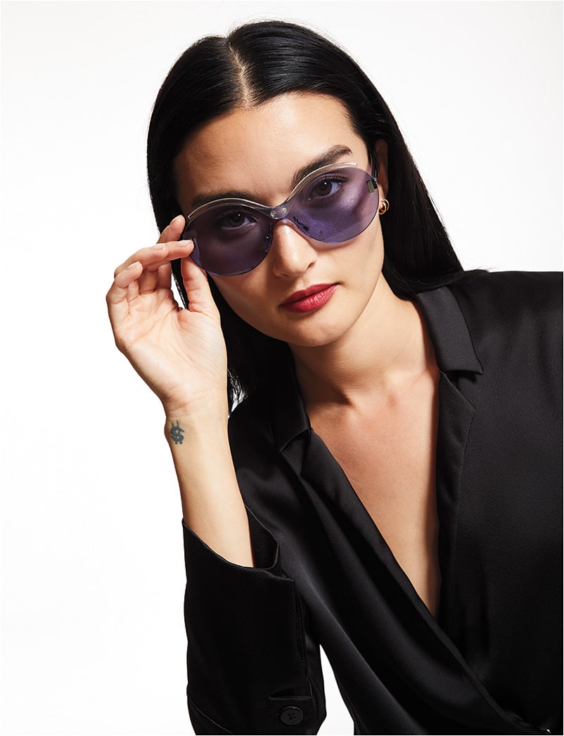 The Dita Zotax aviator delivers big on oversized retro glam that stands alone—and stands up to strong patterns.