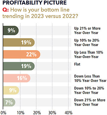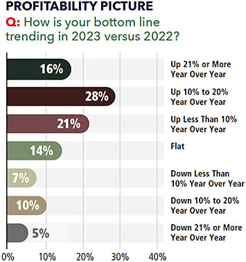 62% OF SURVEY RESPONDENTS IN THE SOUTHERN REGION SAY THEIR BOTTOM LINE IS TRENDING UP OVER 2022.