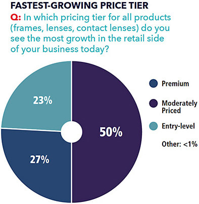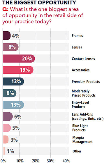 - Key Categories. The areas with the greatest potential? Survey respondents point to contact lenses, followed by premium products and accessories. As for here and now, respondents pinpoint moderately priced product as the area currently experiencing the greatest growth.