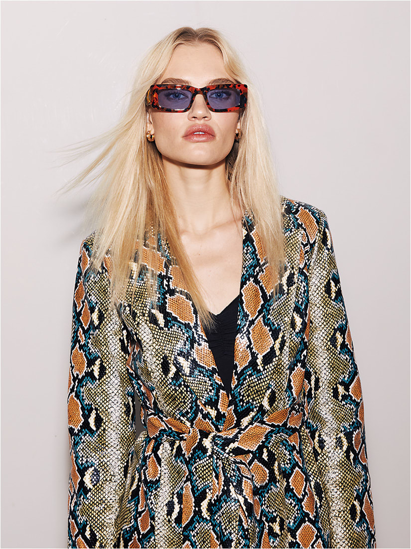 The rich red Roberto Cavalli VRC020 from De Rigo Rem is a head-turning style with gold wire snake designs serving as temples.