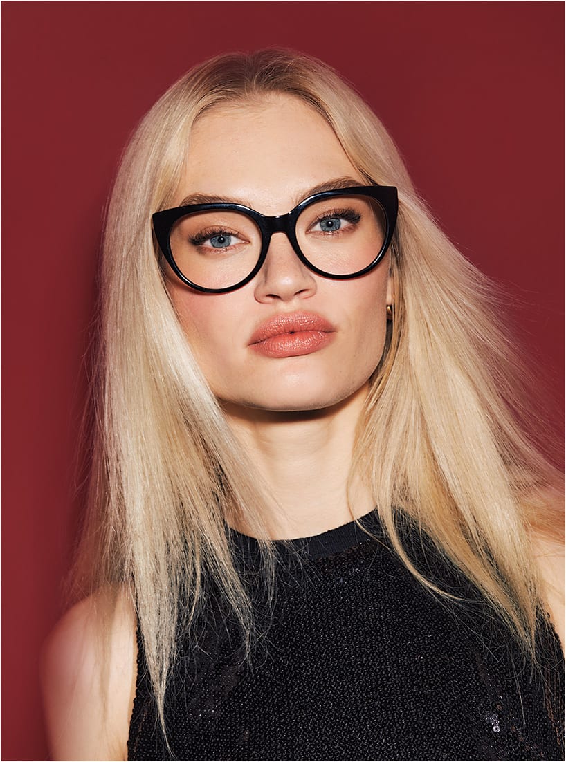 The Derek Lam 10 Crosby Hollie from Modo is a bold, oversized black acetate cat-eye with gold wire temples.