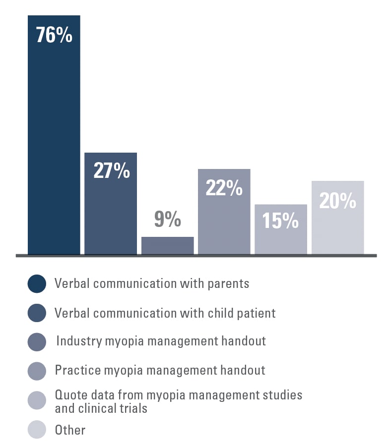 Most respondents also stated that they are comfortable with their level of understanding of myopia control—and most discuss myopia management with the parents of patients to help educate and facilitate the process. Additionally, most have looked to trade journals and live CE courses as resources for training and educating themselves on myopia management.