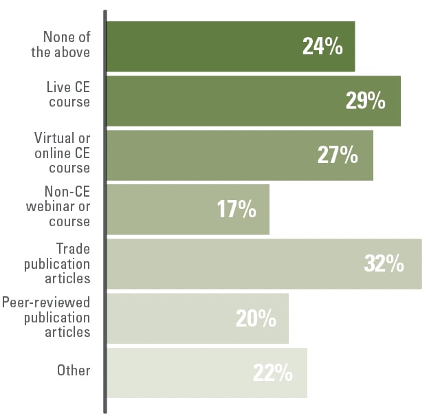 “Other” included answers such as “representative presentations,” “personal research,” and “doctor discusses in weekly meetings.” See related sidebar.