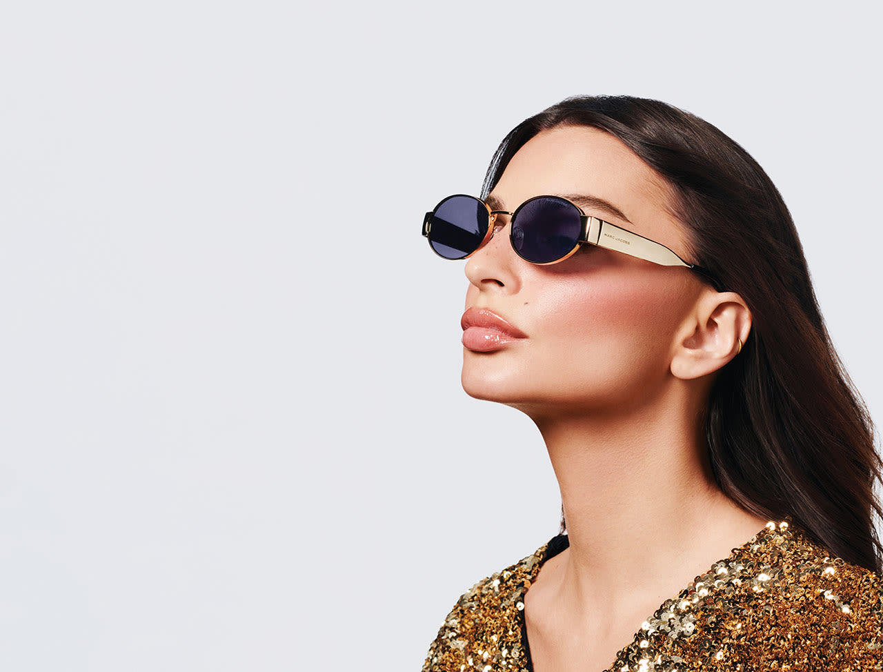 Pictured here on Ratajkowski, the Marc Jacobs 806 is a metal sun style featuring a retro oval shape with a wide, flat metal rim accompanied by chunky temples with the brand’s logo.