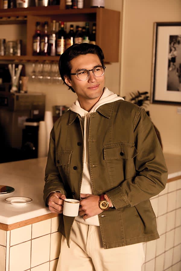 Inspired by the style of the 1950s, the optical American Optical Emerson model, pictured here, is the brand’s first crown panto silhouette of the 21st century.