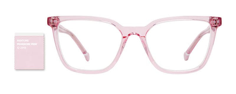 The Illa Sveva style from ClearVision Optical in fuchsia laminate is a showstopping take on the Winterberry hue, which Pantone shares “ignites the senses.”