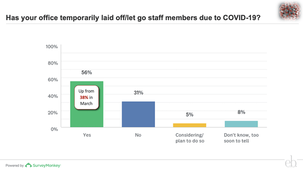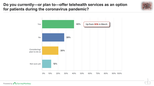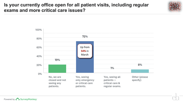 April 17, 2020 — How many practices expect a significant financial impact from the crisis at hand? How many have furloughed employees and what percentage are utilizing telemedicine options?