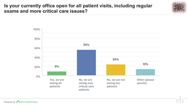 The survey dives deep into such critical questions as whether ECPs expect a financial impact to their business due to COVID-19, if they’re offering telehealth solutions, and if optometrists and opticians have kept their doors open or not—or stayed open just for critical care patients.