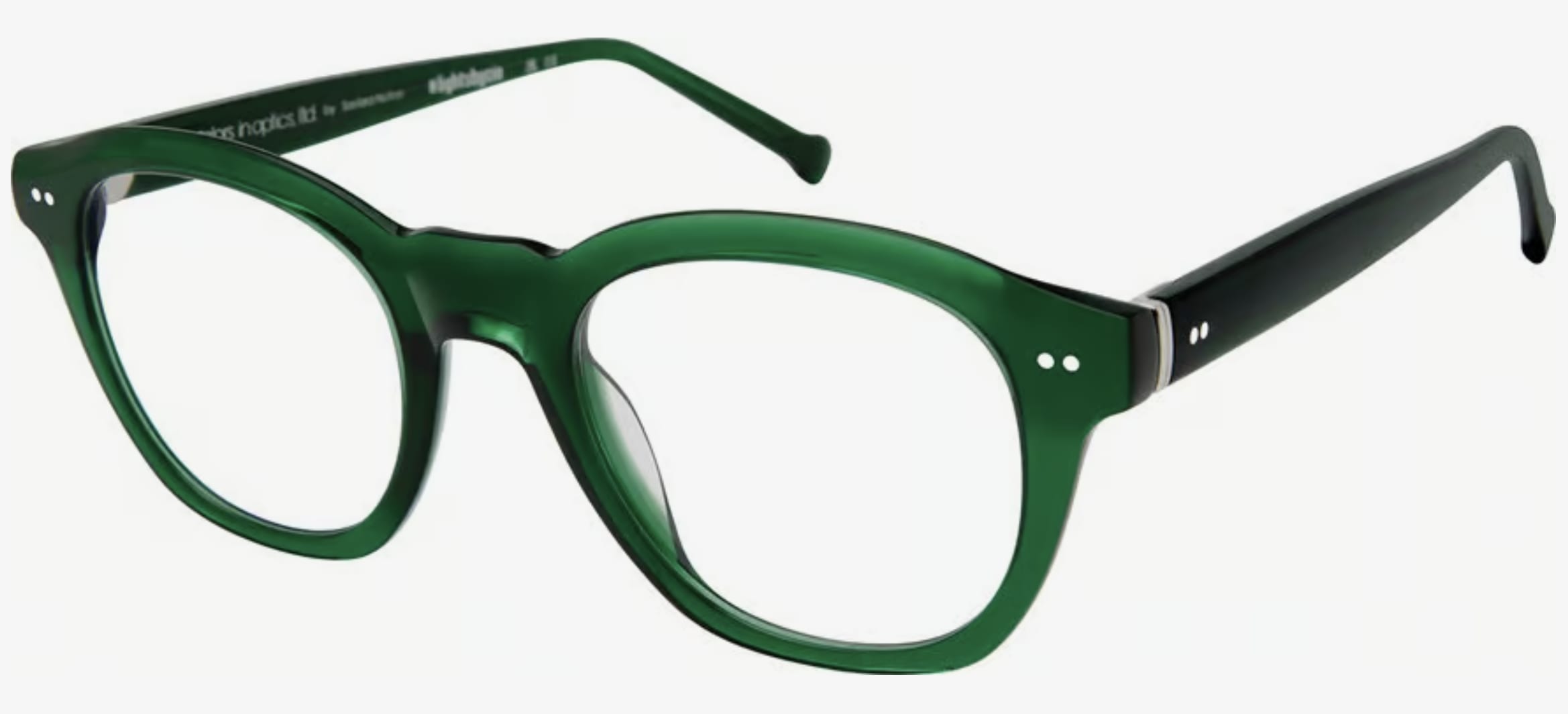 Pictured above, the unisex optical Brandon style features round, vintage-inspired contours.
