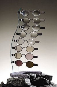 "We have three pairs--one plano, one hi minus, and one hi plus. All have one regular non-coated lens and the other is the same lens with the AR coating on it. That's what works the best. It's a visual thing. I think when customers can actually physically see the product and what it enables them to see better, it is easier for them to understand why they should get it.