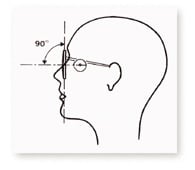 Figure 4 - An alternative method for determining vertical O.C. height is to have the patient raise his head until lenses are vertical to the floor. Mark pupil center and request that height for the O.C. "Rule of Tilt" formula is not required. |