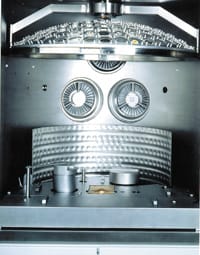 The next step in the evolution of lens coatings came with the introduction of lenses made of polycarbonate. Poly is so soft that lenses must always have scratch coating. During the first few years of poly, lenses were produced only in stock lens form, but when semi-finished poly became available, labs encountered a major problem. Surfacing a polycarbonate lens removes the factory-applied scratch coating on the backside. This meant labs had to apply scratch coating to the backside of surfaced poly lenses. At that time, the late 1980s, labs weren't equipped to apply scratch coating.