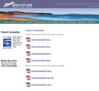 Beach Eye Care sports a sample of its newsletter at its site | Vision Works makes unsubscribing a snap, placing the function right next to the newsletter's subscribe function |