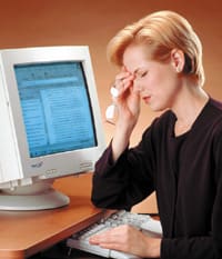 Computer User Tips In addition to having an up-to-date prescription pair of computer eyewear, offer these easy-to-do tips to your patients to make their computer-viewing experience more comfortable. 1. Keep bright lights at a minimum. Lighting should be behind you. 2. Light backgrounds reduce reflections; dark backgrounds increase reflections. Use darker or bold print on a light (white) screen. 3. Computer monitors for adults should be approximately 18 to 24 inches from the eye and tipped slightly downward for the best viewing. Computer monitors for children should be about 24 to 28 inches from their eyes to help avoid eye strain. 4. Position the screen at least five inches below eye level. 5. Use a document holder set at the same distance as your monitor to help stop excessive up-down eye movement. 6. Give your eyes a break! Blink more often and refocus on the distance often. 7. Better yet, give your whole body a break. Stand up and move around occasionally. 8. Use eye drops if eyes are often dry. |