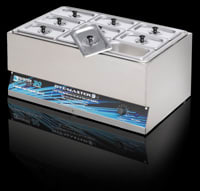 1-800-OptiSource, parent company of Hunter Delatour, announces the introduction of a new water-based tinting system. The Hunter Delatour Nine-Pan Tinting System uses a chrome alloy heating unit mounted above the heat transfer fluid, eliminating leakage common in traditional bottom-mounted designs. The new temperature gauge turns the system on and off without using switches and controls temperature within one degree Centigrade. To learn more, call 800-OPTISOURCE or visit www.1-800-OptiSource.com.