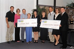 Transitions' employees and Healthy Change winners, from l.: Jim and Andrea Zellmer, FutureOptics Lab; Mr. & Mrs. William Smith; Roni Rohrbacher, Eye Health; Barbara Robinson, Eye Health; Dr. Liebetreu, Eye Health; Shannon Hunt, Transitions; Jon Harris, Transitions |