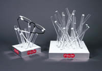 Eyewear Design Concepts' latest marketing campaign is sure to get a second look from many. The "seeing double" theme runs throughout advertising materials and P.O.P., with a two-headed fire hydrant and a double streetlamp among the many everyday objects shown in a new light. An easel-displayed catalog features a mirror on the back side, while the Quartz frame display (shown) uses randomly arranged Plexiglas tubes to hold a featured frame. All materials are free to for ECPs to support any Eye-DC adult frames. To see double in your office, E-mail usa@eye-dc.com, or call 866-393-3865.