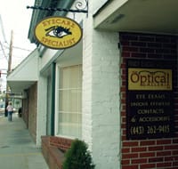 An Optical Galleria is a practice with all three Os in the 1,200-square-foot space. Original artwork is in permanent and rotating displays and restored and revamped antique furnishings serve as decorative display areas for frames and accessories |